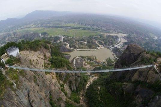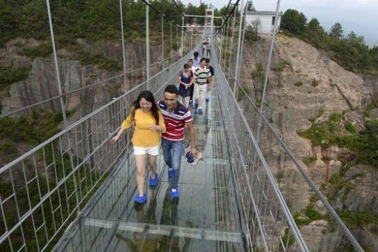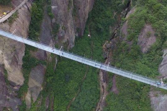 Es una de las nuevas atracciones de China, pero solo es apto para no miedosos y, especialmente, para aquellos que no sufran vértigo. En el parque geológico nacional de Shiniuzhai se ha inaugurado un nuevo puente colgante, que tiene una característica muy especial: su suelo es de cristal.