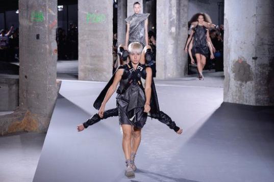 El diseñador Rick Owens presenta una colección en la que unas modelos cargan con otras en la pasarela