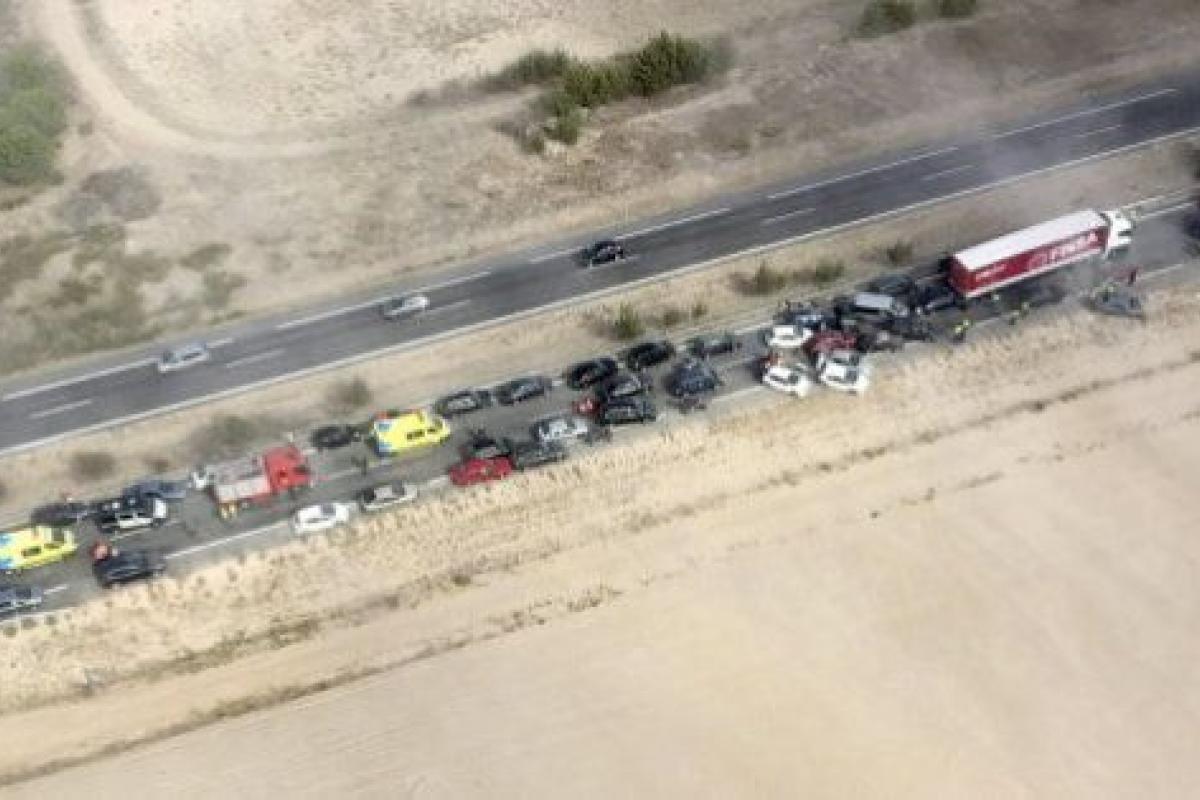 La colisión, que al parecer ha podido tener su causa en la escasa visibilidad por una tormenta de arena provocada por el viento, se ha producido minutos antes de las 15.26 horas, cuando varias llamadas al 112 han informado informan de una colisión en cadena en el kilómetro 149 de la A-6, en Medina del Campo (Valladolid), sentido Madrid, donde se habían visto implicados bastantes vehículos y había un número indeterminado de personas heridas.