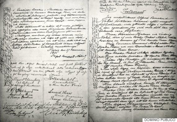 En 1896, cuando Nobel falleció en su villa de San Remo (Italia) a causa de una hemorragia cerebral, sus albaceas se aprestaron a hacer realidad su última voluntad: dedicar los 31 millones de coronas suecas de su herencia (actualizado a hoy, unos 235 millones de euros) a la institución de los cinco premios anuales que él había especificado en su testamento.