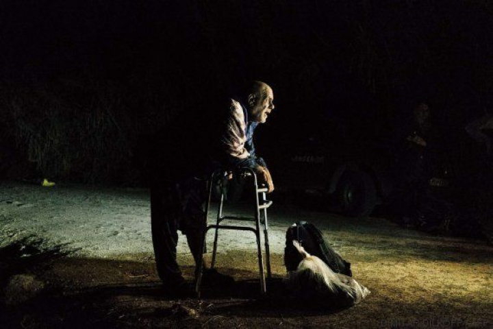 Un anciano sirio, en una playa de la isla griega de Lesbos, tras tocar tierra procedente de Turquía.