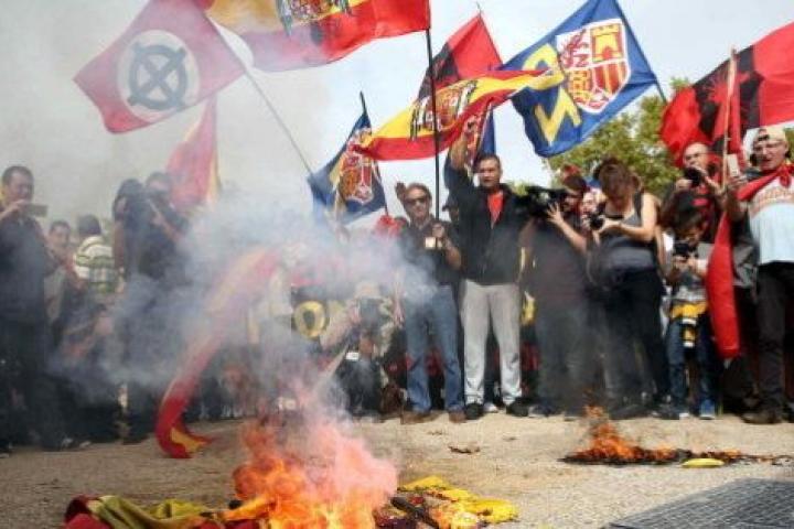 Un centenar de ultraderechistas quema esteladas en Barcelona