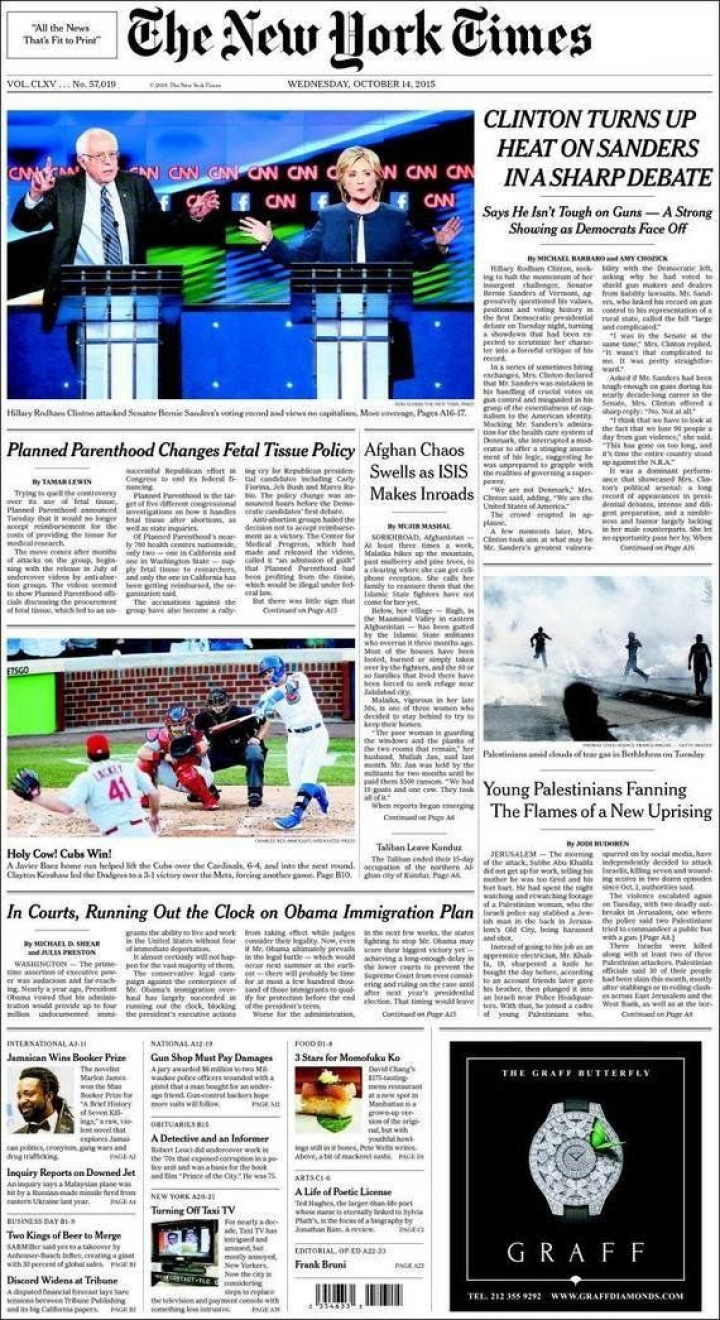 Hillary Clinton es, en una primera estimación del Wall Street Journal, la vencedora del primero, en el que ha tenido a Bernie Sanders como principal rival. El New York Times, de hecho, destaca el enfado del senador por lo que considera una polémica artificial en torno a los correos electrónicos de la exsecretaria de Estado.