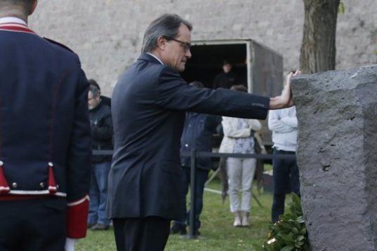 El presidente en funciones de la Generalitat, Artur Mas, ha homenajeado al expresidente Lluís Companys en la tradicional ofrenda floral ante su tumba en el Fossar de la Pedrera del cementerio de Montjuïc.