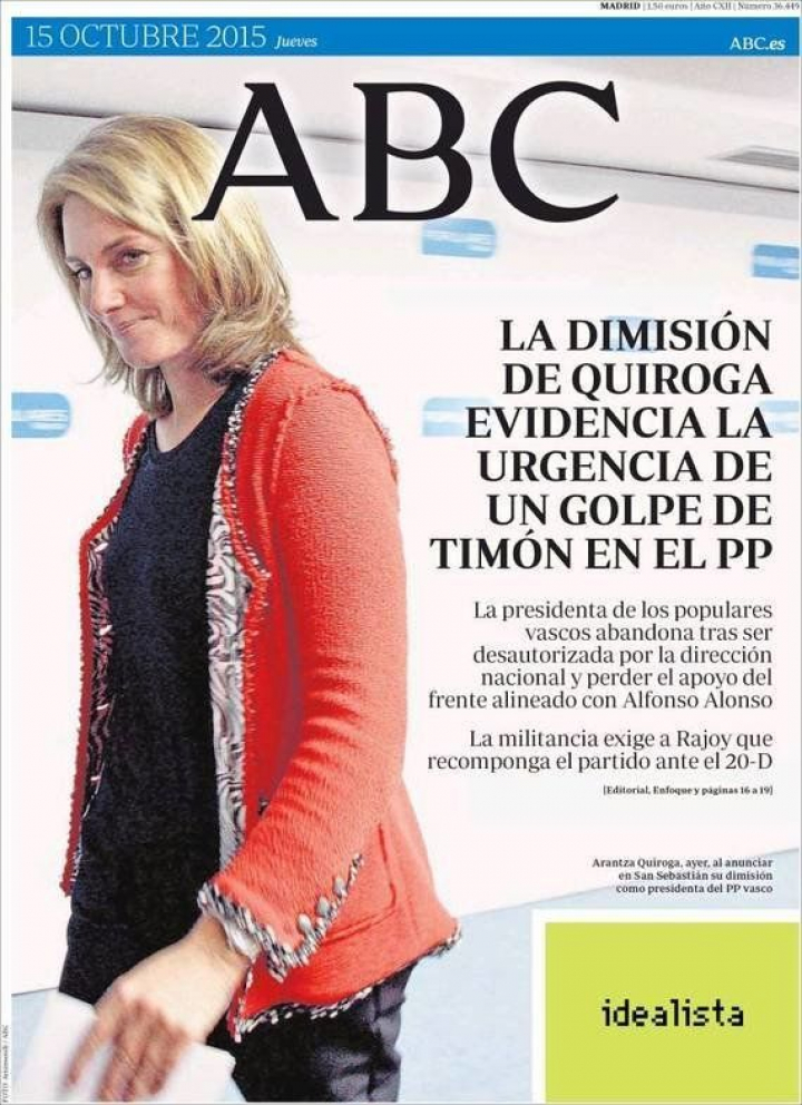 De ahí que El País, en un editorial, señale que "los errores que la han llevado a la dimisión no deben impedir el debate". Aunque, como señala en un análisis Luis Aizpeolea, "el Gobierno de Rajoy siga empeñado en hacer del PP vasco un parque temático de la firmeza contra un terrorismo que hace cuatro años que terminó".