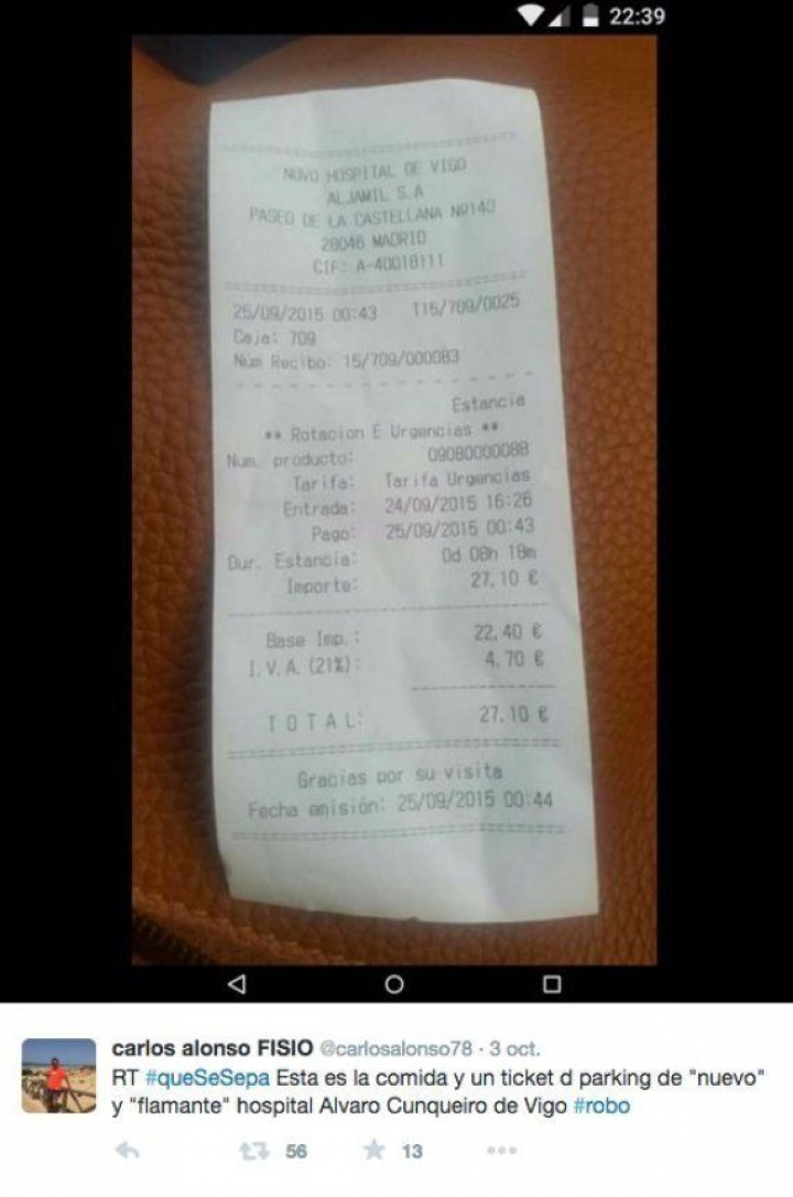 Cameselle advierte también de que las comidas que se sirven a los pacientes no se ajustan “a lo que tiene que ser”. “El servicio de dietética y nutrición, que era público, lo han privatizado y dan el mismo tipo de comida a un enfermo normal que a un oncológico o que a un niño, no hay agua en las comidas….” denuncia. Además, aseguran los empleados, en el antiguo hospital había cocina propia con personal propio, a quien “han relegado a un lado y están infrautilizados porque los quieren reclasificar en otras categorías”. “¿En qué se reclasifica un cocinero que se ha formado para ello?”, se preguntan los trabajadores, que señalan otro de los problemas que más indigna a pacientes y familiares. El aparcamiento cuesta 1,86 euros la hora (en urgencias es aún más caro) y no hay alternativa: al hospital solo se puede llegar en coche y no hay más parkings en los alrededores.