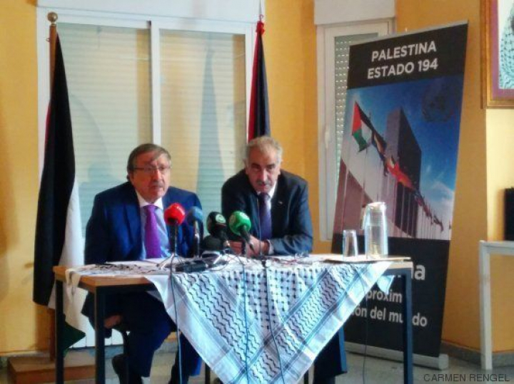 Musa Amer Odeh, embajador de Palestina en España, junto al portavoz de la embajada, Marwan Burini.