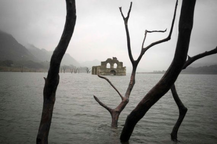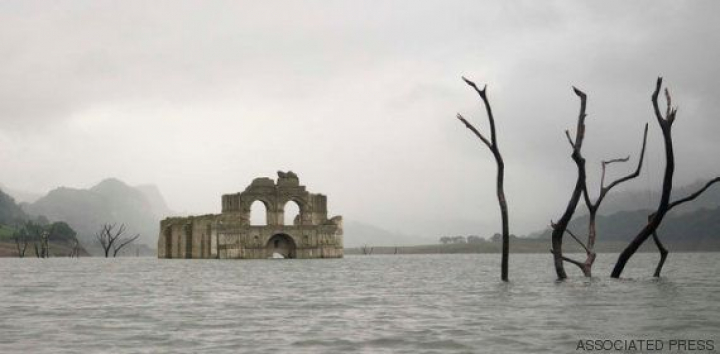 La sequía en el sur de México ha provocado tal descenso en el nivel del agua que los restos de una iglesia abandonada del siglo XVI ahora pueden verse por encima del agua.