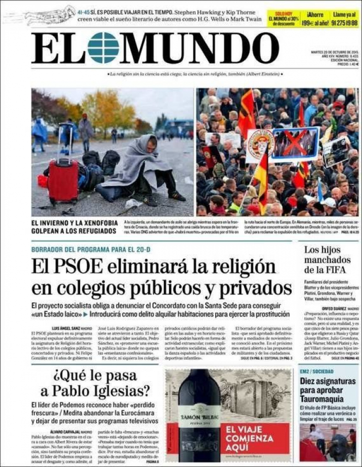 Por cierto que la situación en Cataluña también se supedita a las generales porque, anuncia El Periódico, "Junts pel Sí y la CUP ven difícil cerrar la investidura antes".