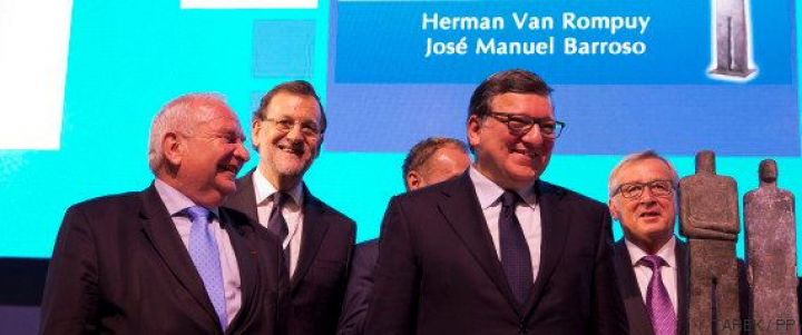 Para terminar la fiesta, como cantó en Eurovision Paloma San Basilio, Rajoy se ha hecho la primera foto esperada de este miércoles con Durao Barroso, Herman Van Rompuy, Donald Tusk y Jean Claude Juncker, con la excusa de un premio del PPE. ¡Todos a una!
