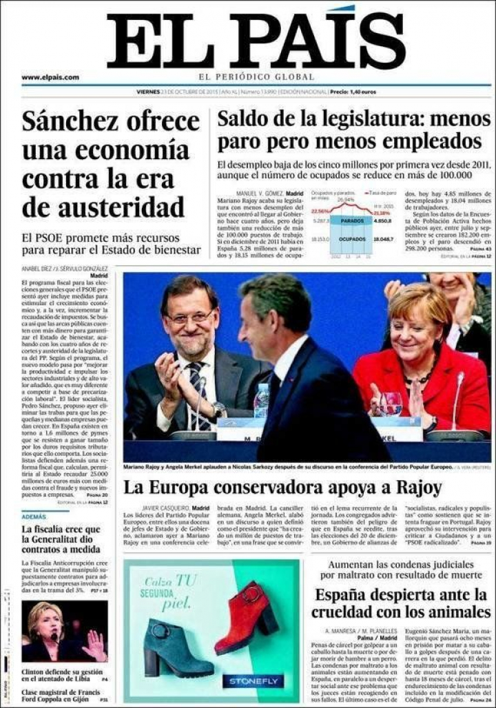 "Rajoy es el presidente del millón de empleos". Ese fue el eslogan con el que el congreso del PP europeo y los principales líderes, con Merkel a la cabeza, resumieron el bagaje del presidente español, en su objetivo de que gane las elecciones del próximo 20 de diciembre.