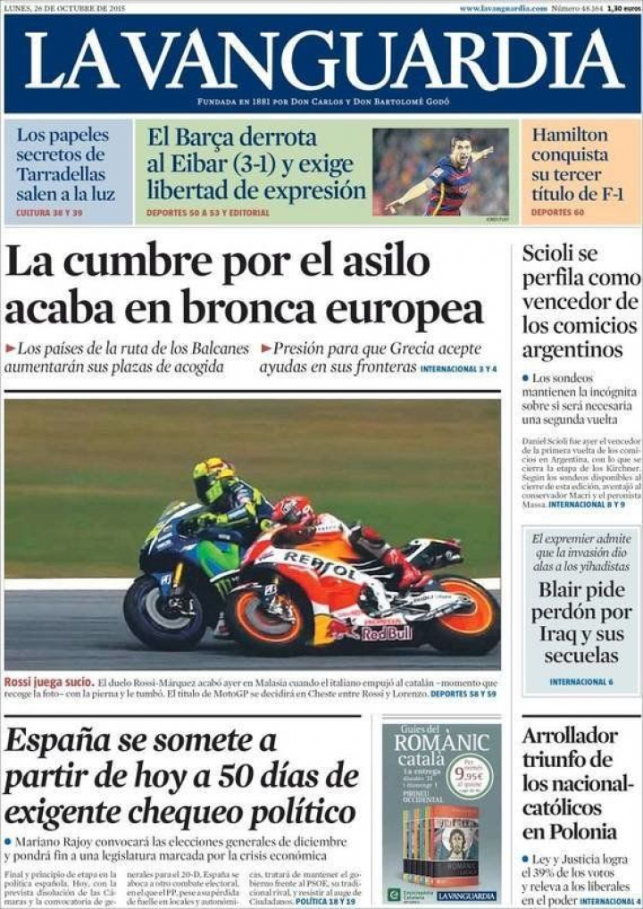 "La cumbre por el asilo acaba en bronca europea", resume La Vanguardia, al constatar que "el cruce de reproches se impone sobre la llamada a la acción humanitaria". Sin embargo, desde el Reino Unido, el Financial Times estima que la Unión Europea se mueve para rebajar la tensión en los Balcanes.