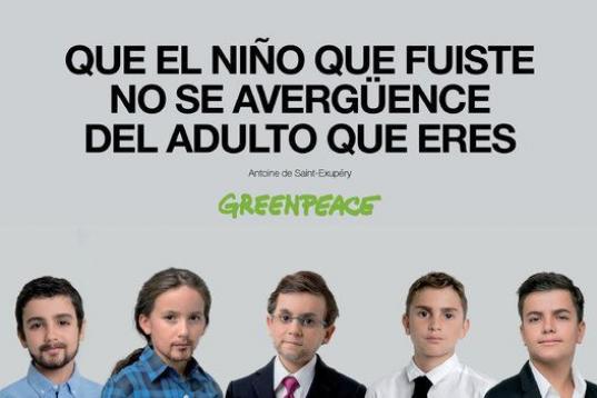 "Hemos querido apelar al niño que nuestros políticos fueron porque seguro que ellos querrían que cuidasen del planeta. Con esta campaña les pedimos que no se olviden de ello, y ahora que son líderes políticos adopten compromisos ambientales firmes, que repercutirán positivamente en los problemas sociales y económicos que enfrenta actualmente la sociedad española", explica en un comunicado Marta González, portavoz de Greenpeace.