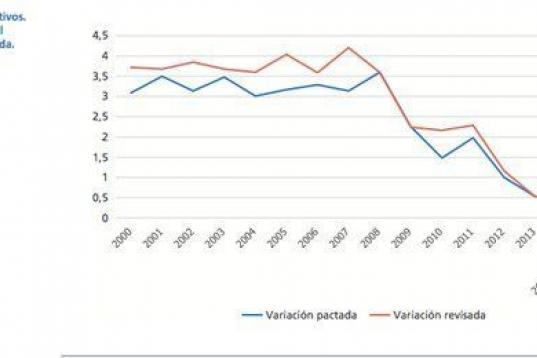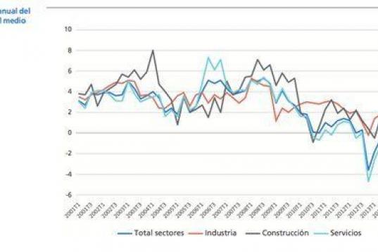 La firma indica que la evolución temporal de los salarios medios "ha sido de una progresiva moderación de sus crecimientos" en todos los sectores. En otras palabras: los sueldos han bajado.
