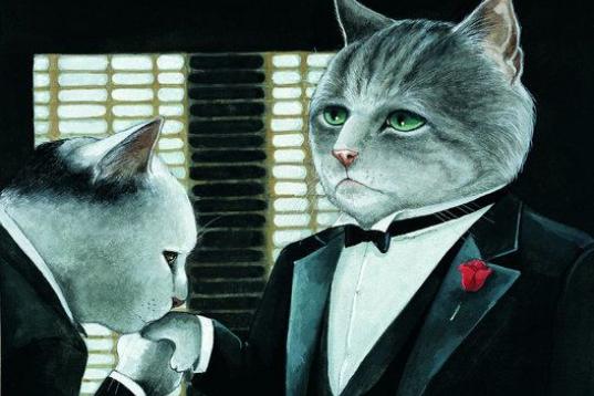 La escena que representa de la película de Francis Ford Coppola es la escena inicial: cuando Amerigo Bonasera (Salvatore Corsitto) acude a casa de Vito Corleone (Marlon Brando) para pedirle que tome venganza de unos muchachos que han deshonrado a su hija. Este lo atiende con un gato en los brazos. Lo curioso es que el animal no estaba en el guión inicial de Coppola pero se coló en plató (y en escena) convirtiéndose en uno de los felinos de la historia del cine y demostrando que los gatos adoran la gran pantalla..