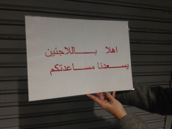 El cartel de bienvenida a los refugiados