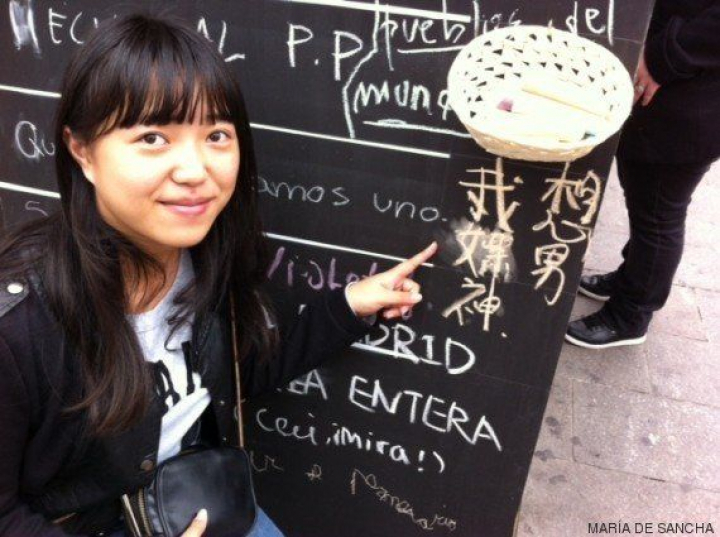 Una joven británica de origen musulmán se arrodilla para escribir en una esquina. Quiere "viajar por el mundo" y mejorar su español. "Me encantan otras culturas y los idiomas. Por eso he venido aquí. Aunque hasta ahora no se me ha dado bien", admite entre risas. Un grupo de adolescentes escribe, con algo de vergüenza: "Conocer a Justin Bieber". Y salen corriendo.