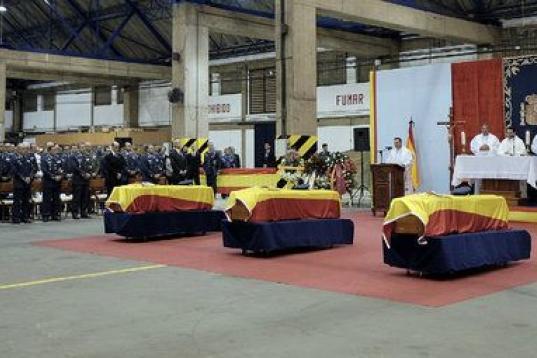 El funeral de los tres militares muertos en Canarias los homenajea por "vivir y morir por España"