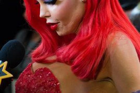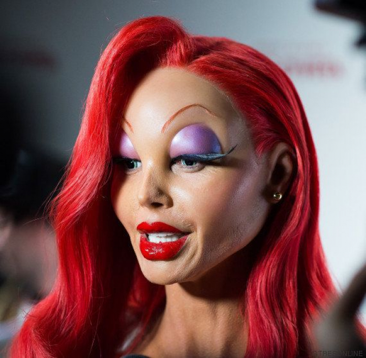 Tras horas de preparación, acabó convertida en el personaje de animación Jessica Rabbit:
