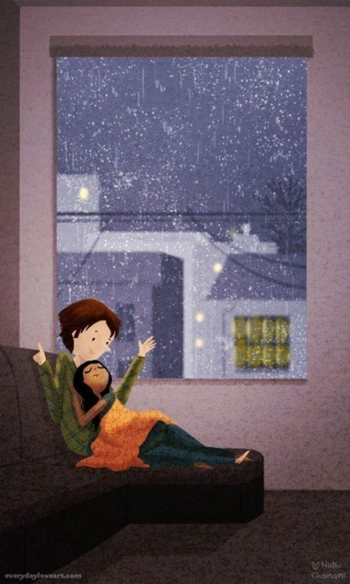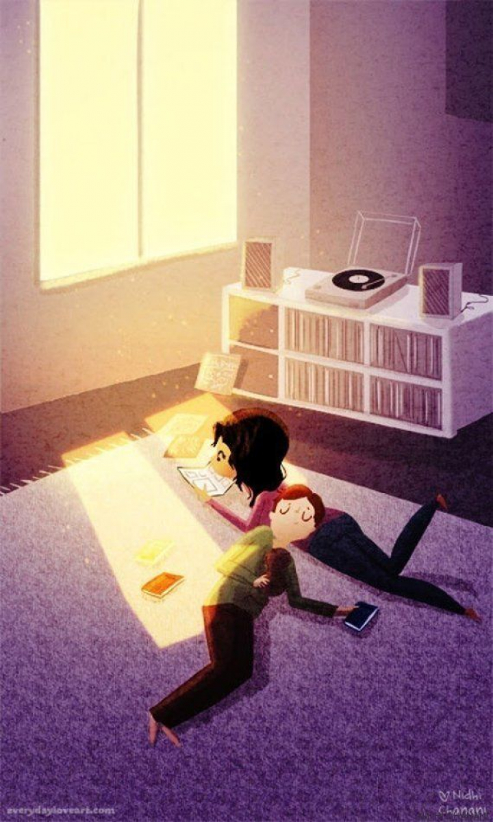 La artista Nidhi Chanani lleva cinco años trabajando en una serie de ilustraciones que muestran los pequeños instantes del día a día que conforman una relación amorosa.