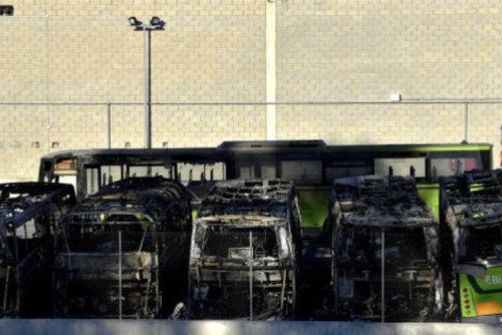 Siete autobuses han quedado completamente calcinados y otro parcialmente quemado, y los bomberos han tenido que trabajar hasta las cinco de la madrugada para extinguir las llamas.