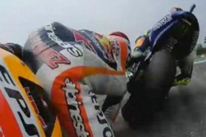 "Está claro que Valentino empujó intencionalmente Marc hacia el exterior de la pista, algo que va contra la normativa (...) Los datos de la moto de Marc muestran que, a pesar de que estaba sujetando la moto tratando de evitar el contacto con Valentino, su palanca del freno delantero recibió un impacto repentino que bloqueó el neumático delantero y esa fue la razón de su accidente. Creemos que esta presión fue el resultado de la patada de Rossi", analizó Nakamoto a través de un comunicado.
