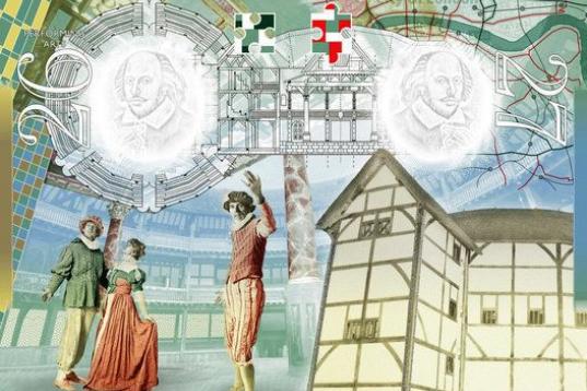 Two pages (featuring Shakespeare's Globe - Performing Arts) from the new British passport design that have been unveiled at Shakespeare's Globe Theatre in London.
