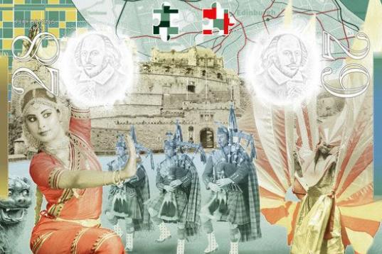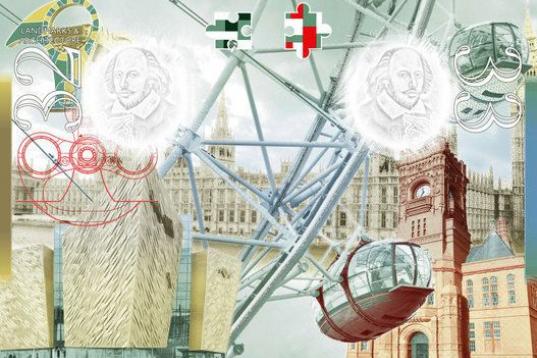 Two pages (featuring Festival Culture - Performing Arts) from the new British passport design that have been unveiled at Shakespeare's Globe Theatre in London.