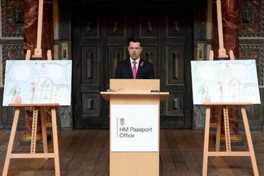 Minister for Immigration James Brokenshire launches the new British passport design at Shakespeare's Globe theatre in London.