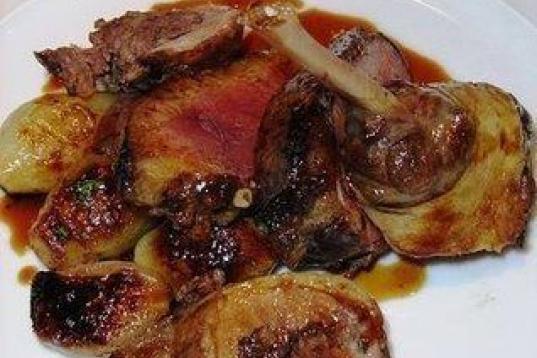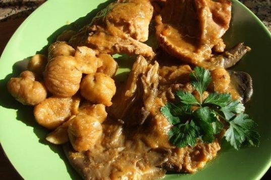 Este es un plato consistente para los días de frío, que lleva conejo, setas y castañas.