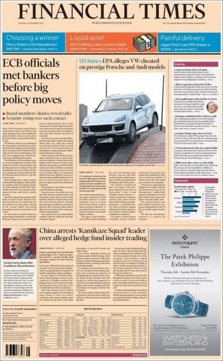 "Altos cargos del Banco Central Europeo se reunieron con directivos de bancos privados antes de que se adoptaran decisiones clave". El titular del Financial Times se apoya en las agendas de seis miembros de la junta directiva del BCE entre agosto de 2014 y agosto de este año.