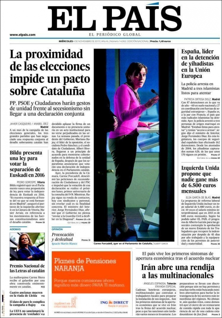 El pulso independentista en Cataluña vuelve a ser esta mañana el asunto principal en la prensa, ya que se rompe un "off the record"...