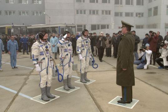 Los últimos preparativos antes del despegue de la histórica primera misión, que consistía en habitar permanentemente la Estación Espacial Internacional. Octubre de 2000.