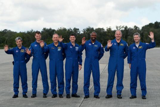 La tripulación del transbordador Atlantis. Febrero de 2008.