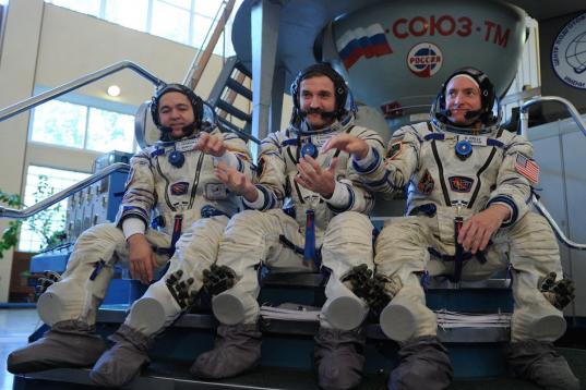 Parte de la tripulación de la Estación Espacial Internacional en la Ciudad de las Estrellas, un centro espacial a las afueras de Moscú (Rusia). Septiembre de 2010.