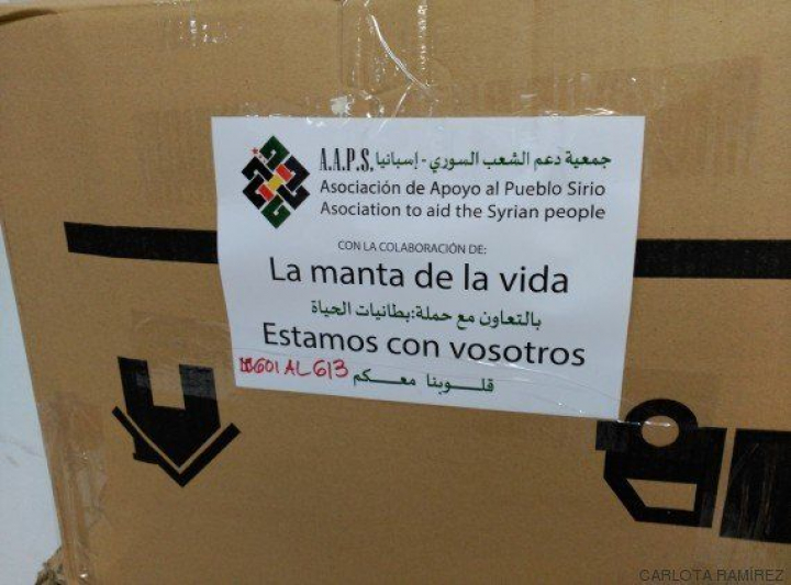 La Asociación de Ayuda al Pueblo Sirio (AAPS) en Madrid está hasta arriba. En la puerta de la calle Marroquina 108 se amontonan muchísimas cajas de cartón que han sido enviadas de todas partes de España. Cada una de ellas contiene una o varias mantas tejidas a mano, exclusivamente para las familias que luchan por sobrevivir en el conflicto de Siria. En las etiquetas de las cajas, dos frases: "La manta de la vida. Estamos con vosotros".