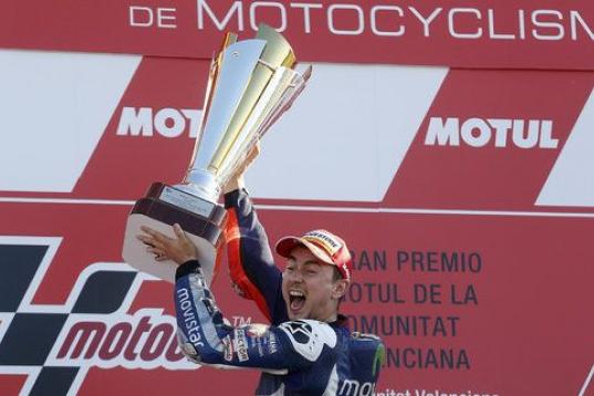 El español Jorge Lorenzo (Yamaha YZR M 1) se ha proclamado campeón del mundo de MotoGP 2015 al imponerse desde la primera hasta la última vuelta en el Gran Premio de la Comunidad Valenciana en el circuito "Ricardo Tormo" de Cheste, por delante de los pilotos de Repsol Honda, Marc Márquez y Dani Pedrosa.
