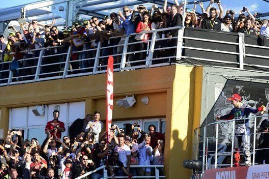 Las tres últimas vueltas fueron de auténtico infarto, pues Pedrosa alcanzó a Márquez y le llegó a superar, pero éste le devolvió el adelantamiento de manera muy apurada y esa situación le dio la ventaja suficiente a Jorge Lorenzo para imponerse en Valencia y lograr su tercer título mundial de MotoGP y el quinto de su carrera deportiva (también tenía dos en 250 cc).