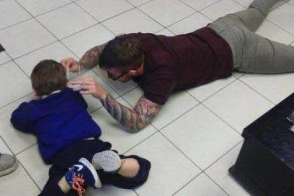 A su negocio llegó el pequeño Mason Davies, un niño con autismo al que sus padres no lograban convencer para que se sentara en el sillón. Como huía de la situación, Williams decidió tirarse al suelo para cortarle el pelo. Así Mason estaría más cómodo y las fotos demuestran que tenía razón.