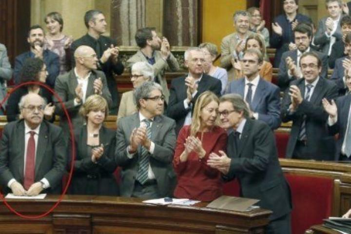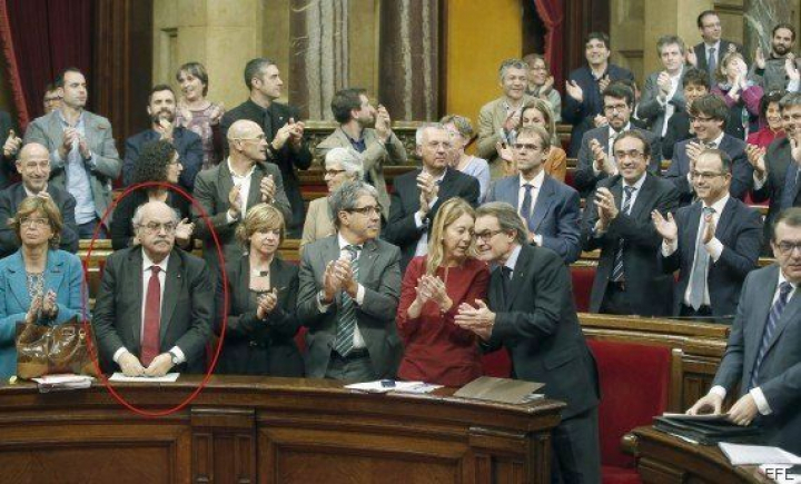 Decimos casi porque el conseller de Economía en funciones, Andreu Mas-Colell, ha evitado aplaudir la aprobación, como han recogido varias instantáneas durante la ovación que recibía la resolución.