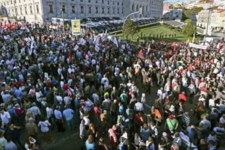 Enfrente, manifestantes reunidos por el mayor sindicato del país, la CGTP (de orientación comunista), mostraron su respaldo a un acuerdo de izquierdas que ponga fin a la austeridad.