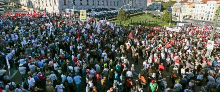 Vista de la manifestación convocada por la Confederación General de los Trabajadores Portugueses contra el gobierno de Coelho