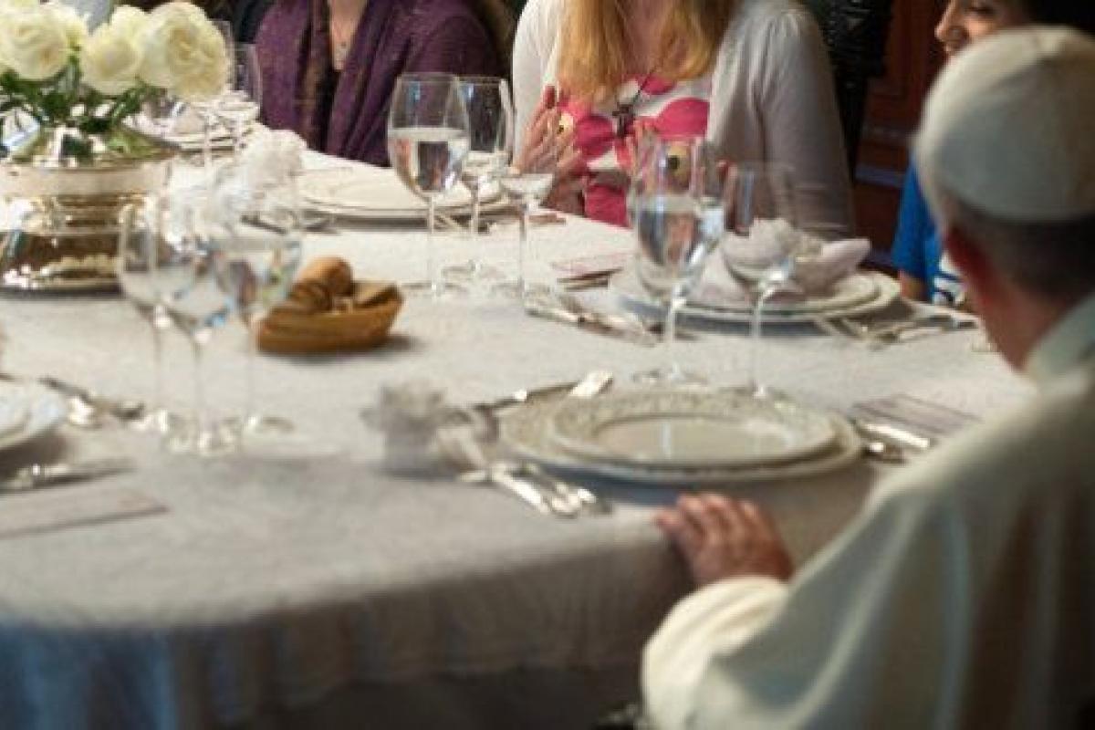 Afirmó que los cristianos deben tener "una especial vocación hacia la convivialidad" y puso el ejemplo de que "Jesús no desdeñaba comer con sus amigos". Al respecto, el papa quiso explicar que el sentarse a la mesa y el "nutrirse" no es siempre "el símbolo de una justa división de los bienes, capaz de llegar a quien no tiene ni paz ni afecto".