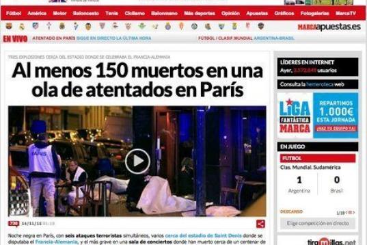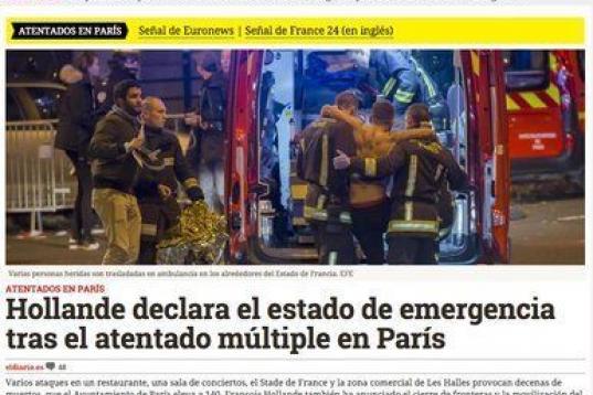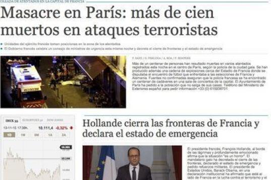 Una fuente policial confirmó a Efe varios tiroteos en el centro de París, así como tres explosiones registradas junto al Estadio de Francia, donde se disputaba el encuentro amistoso de fútbol Francia-Alemania. El presidente del país, François Hollande, ha decretado el estado de urgencia en todo el territorio francés y el cierre de las fronteras del país ante los "atentados terroristas sin precedentes". Cerca de 1.500 militares han sido movilizados y el Ayuntamiento de París pidió a los ciudadanos que no salieran de sus casas.