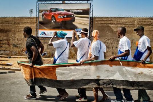 Retrato de niños del municipio de Gugulethu el día siguiente a las semifinales de la Copa del Mundo de Fútbol de Sudáfrica entre Holanda y Uruguay. Ciudad del Cabo, Sudáfrica. (7 de julio de 2010).