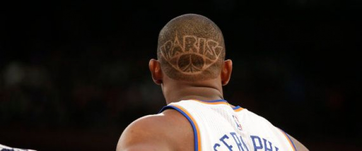 El jugador francés de los New York Knicks Kevin Seraphin homenajeó a los asesinados en París con un peculiar peinado en honor a la capital gala.