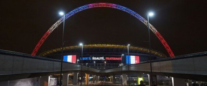 De momento, Wembley ya homenajea a las víctimas coloreando su fachada con los colores de la bandera francesa y el lema "libertad, igualdad, fraternidad".