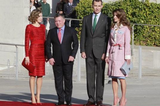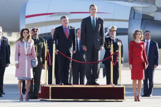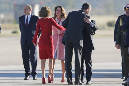 Bienvenida de los reyes a Abdalá y Rania de Jordania a su llegada al aeropuerto de Madrid.
