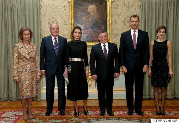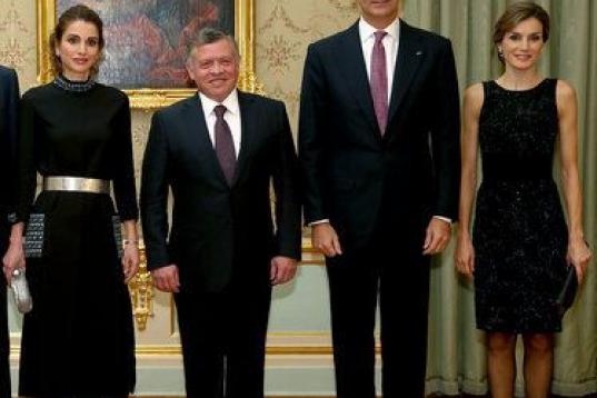 El palacio de El Pardo fue el escenario este jueves de una cena privada ofrecida por don Felipe y doña Letizia a los reyes de Jordania, Abdalá y Rania, que se encuentran en España por un viaje de trabajo. Los acompañaron don Juan Carlos y doña Sofía, con lo que fueron seis los reyes que se reunieron alrededor de la mesa.