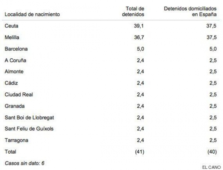 Del informe se extrae una clara conclusión: el Estado Islámico ha propiciado la “eclosión” del joven yihadista español. Hasta ahora, el fenómeno estaba asociado a extranjeros y a personas nacidas fuera de España, pero que estaban domiciliadas aquí. El punto central de este proceso de radicalización se encuentra en el entorno metropolitano de Barcelona, seguido de Ceuta y Melilla. Tres cuartas partes -el 75,8%- de los detenidos son naturales de algunas de estas dos ciudades autónomas, mientras que el escenario protagonista pasa a ser la capital catalana. De los 120 detenidos, el 29,9% han sido arrestados en Barcelona y el 39% residía allí.